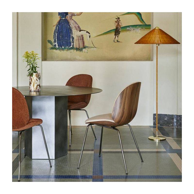 Beetle Dining Chair 3D Veneer - Front Upholstered coque Noyer de chez Gubi.