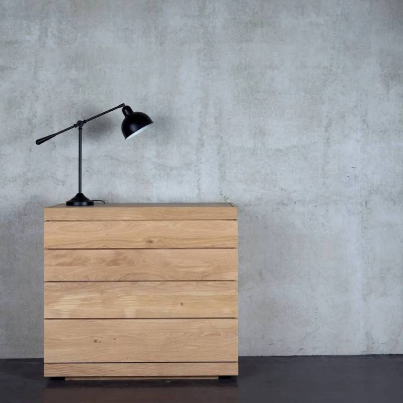 Dotée de quatre tiroirs superposés, elle propose un espace de rangement généreux tout en conservant une silhouette compacte (100 × 50 × 90 cm). Son design rappelle subtilement un empilement — d’où son nom “Burger” — avec des volumes nets et équilibrés.