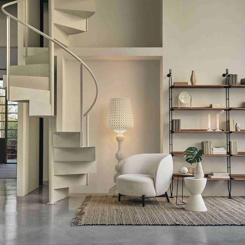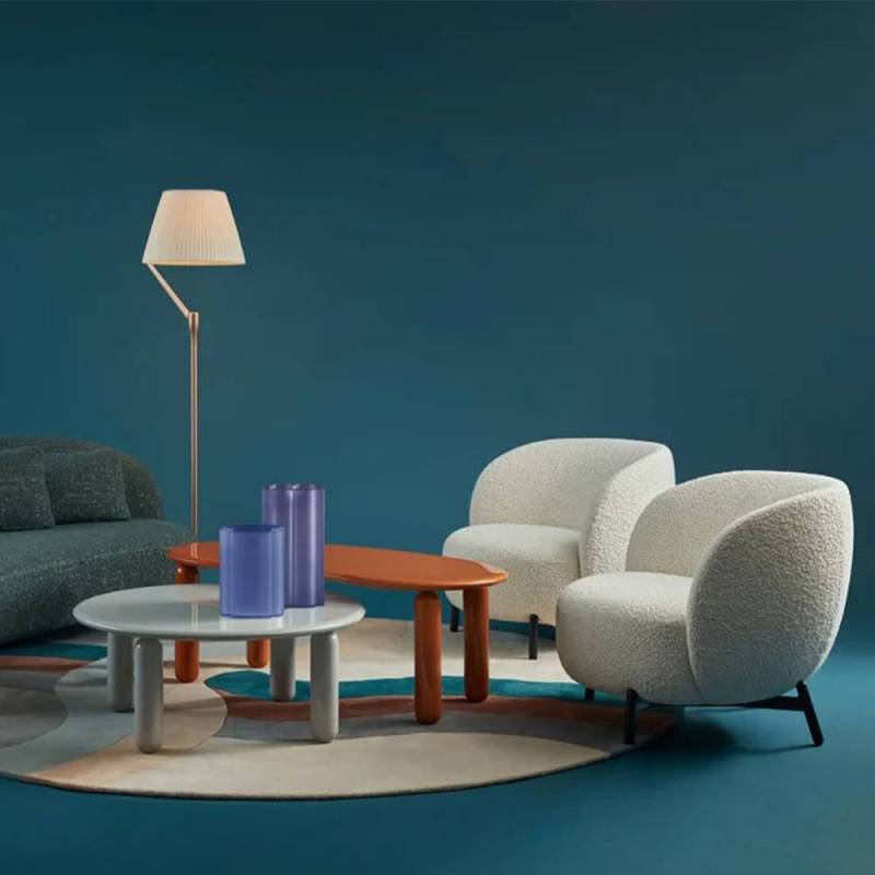 LUNAM est une collection imaginée pour la pièce de vie qui raconte les atmosphères oniriques des paysages lunaires. Une structure essentielle en métal peint soutient les volumes généreux des assises rembourrées. Le canapé, le fauteuil et le pouf sont disponibles en tissu bouclé souple ou en tissu chiné - pour le secteur de l’hôtellerie-restauration et les espaces publics - dans les tons vert olive, bleu pétrole, terra de Sienne et gris.