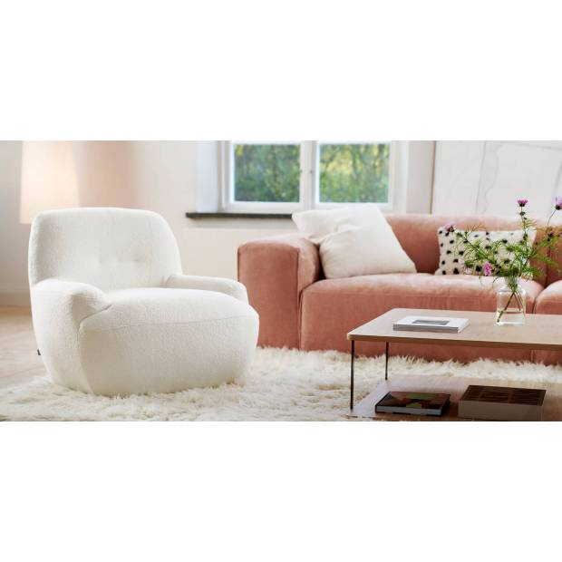 Un fauteuil design dans l'esprit des années 70. Ce classique contemporain au caractère unique s'intégrera parfaitement à une grande variété d'espaces et d'intérieurs. Vous choisirez entre des pieds ronds classiques, ou un pied pivotant discret et élégant. Laissez libre court à votre imagination grâce aux différents tissus et regardez Uma se transformer sous vos yeux !