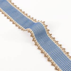 Une tresse décorative innovante avec une broderie côtelée complexe qui forme des motifs floraux stylisés sur de larges bandes de lin.