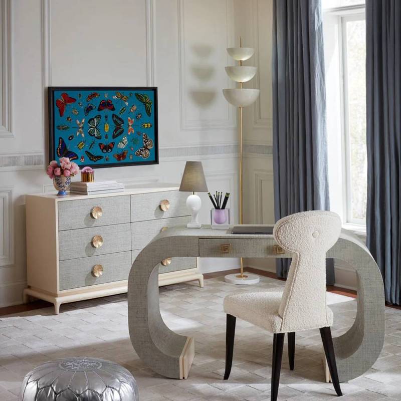 Une épaisse base de marbre avec une tige en laiton poli et trois bols de lumière en émail perforé, dotés chacun d'une double douille pour un éclairage sombre. Arme secrète de chaque décorateur, les torchères apportent une lueur inattendue à toute pièce et font paraître tout le monde plus jeune, plus riche et plus mince.