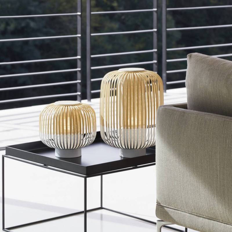Imaginée par le designer Arik Levy, la collection de lampes Bamboo mélange avec habileté matériaux naturels et design contemporain, dans un esprit ‘nature’ très actuel. Les luminaires Bamboo se distinguent par leur abat-jour bicolore en lames de bambou, qui projette sur les murs des ombres délicates. Petit détail de style : le câble d’alimentation est en textile noir. Le diffuseur, lui aussi réalisé en bambou, possède une partie tissée dans un coloris naturel, et une partie tressée en noir, rouge ou vert. La lumière est ainsi filtrée, pour un rendu tamisé et doux, idéal pour des moments illuminés de zénitude. Parfait dans une entrée, un salon ou une chambre.