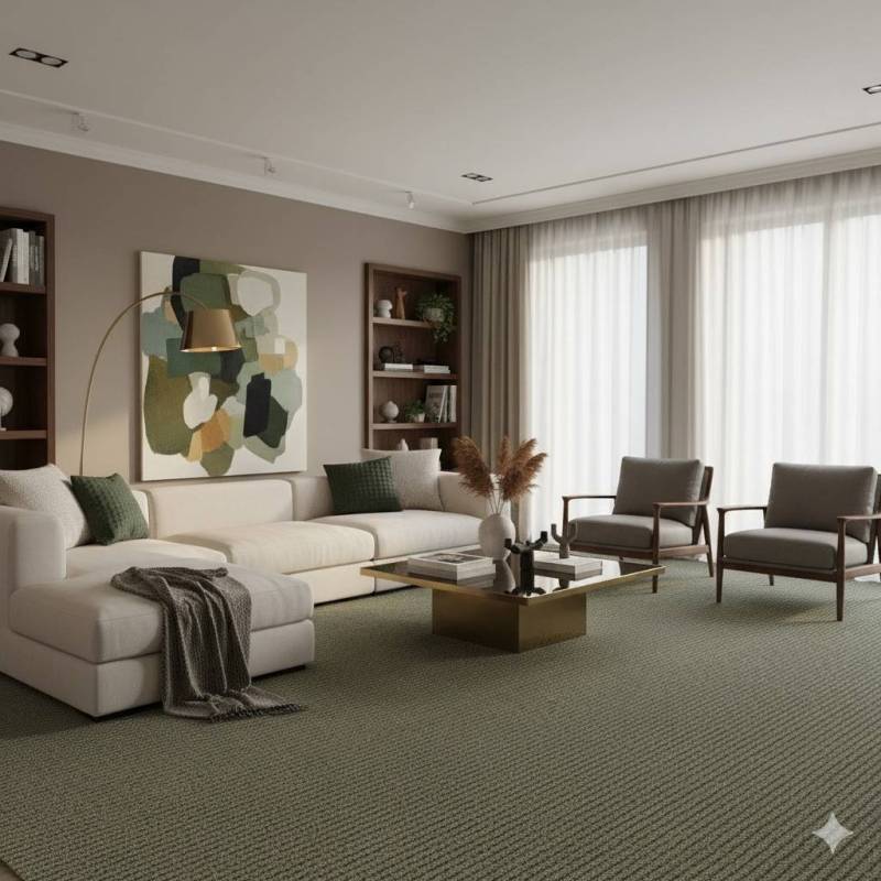 Moquette Andria est une élégante moquette en polyamide à coupe fine (velours), de hauteur de poil moyenne. Son design uni et raffiné la rend idéale pour créer une atmosphère chaleureuse et sophistiquée dans les salons, chambres ou espaces résidentiels haut de gamme.