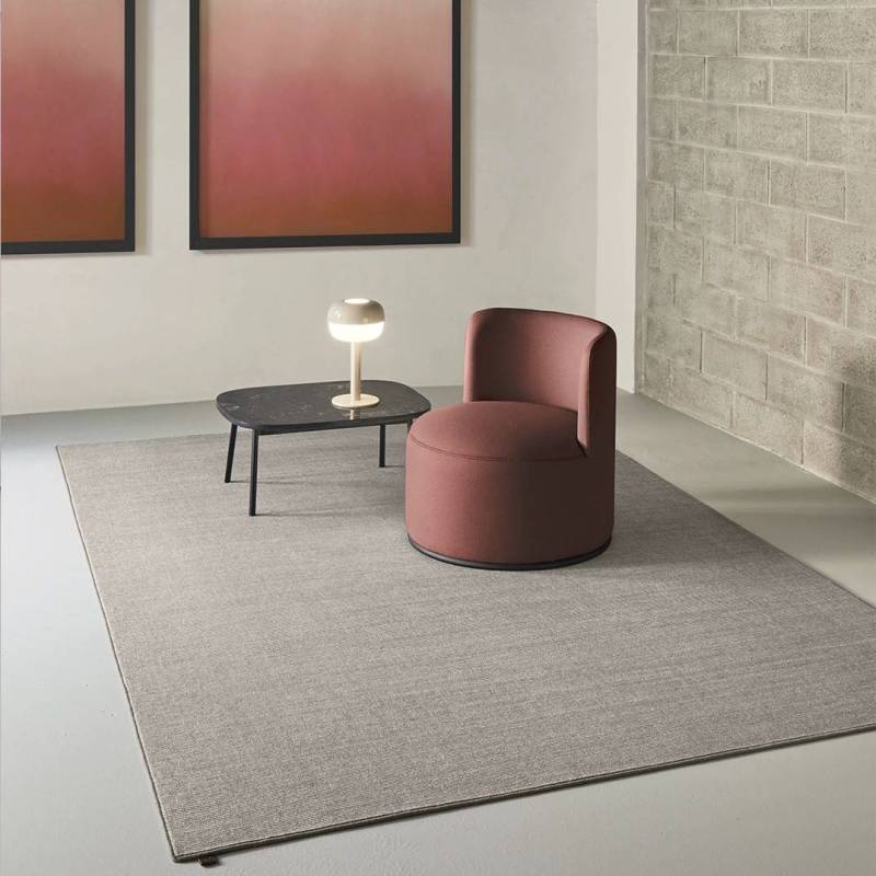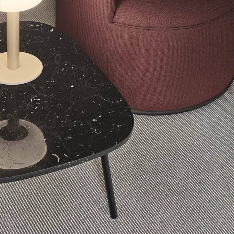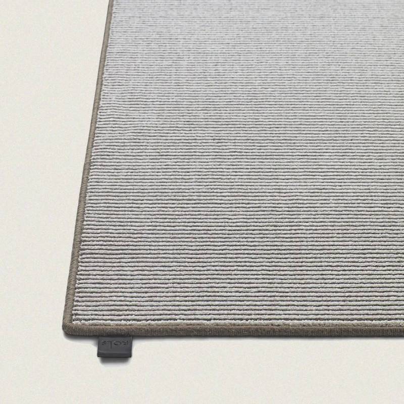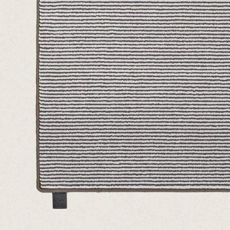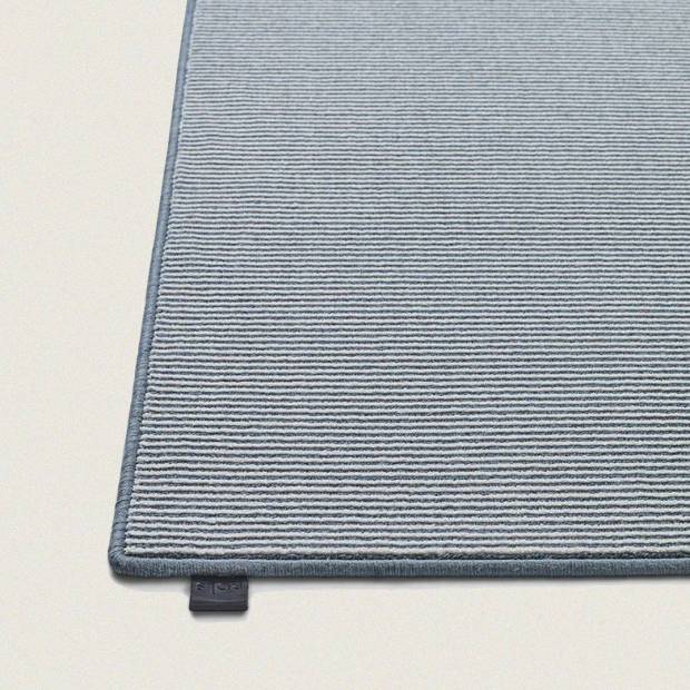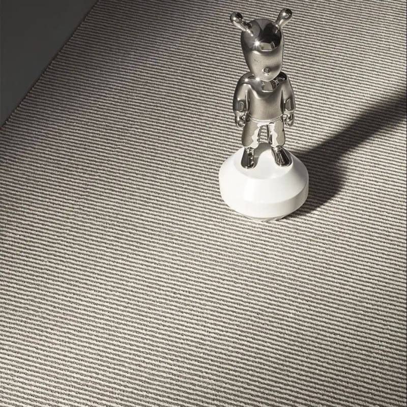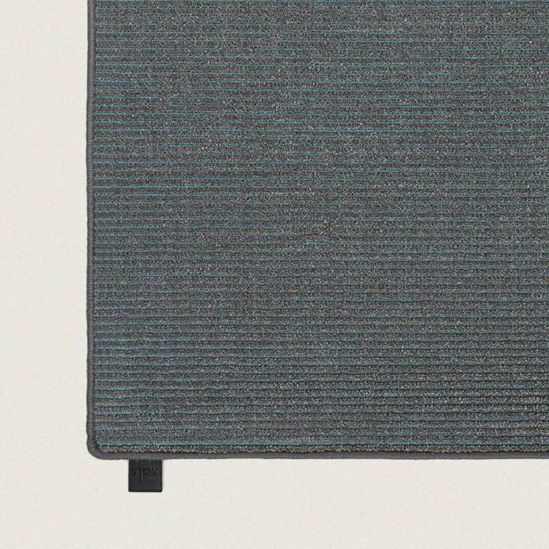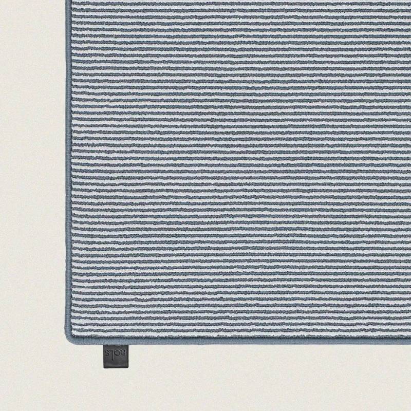 Tissé sur un métier à tisser Wilton traditionnel et fabriqué à partir d'une combinaison unique de laine et de nylon recyclé. Tradition et modernité s'équilibrent parfaitement avec une séquence de coupes et de boucles qui joue avec l'aspect mat de la laine et l'effet eau créé par les fibres de nylon brillantes.