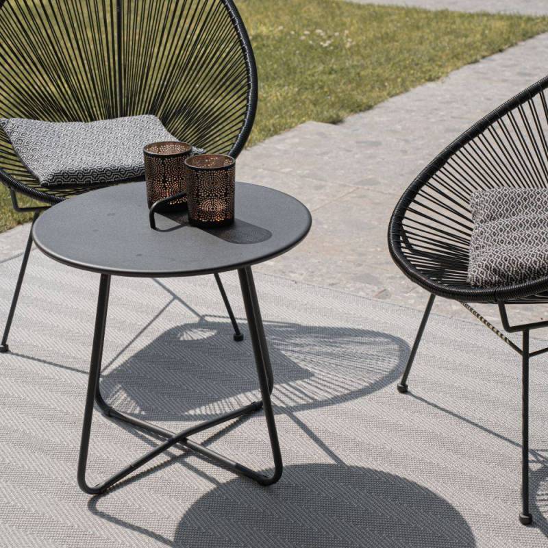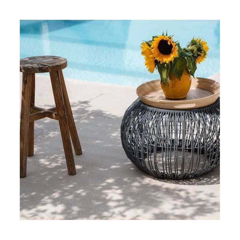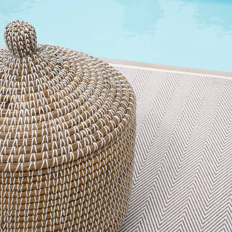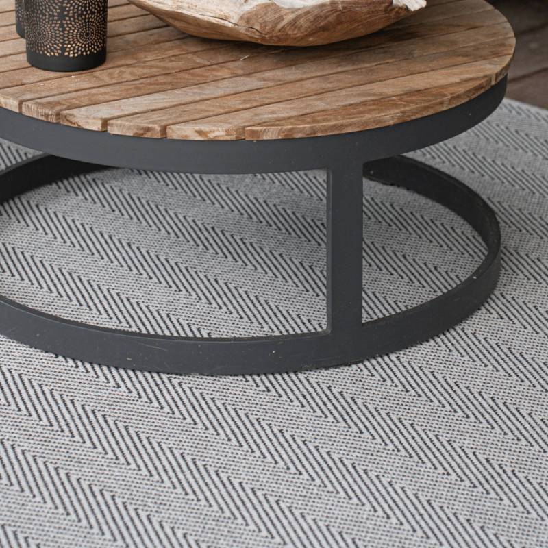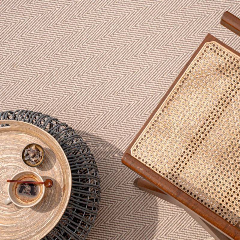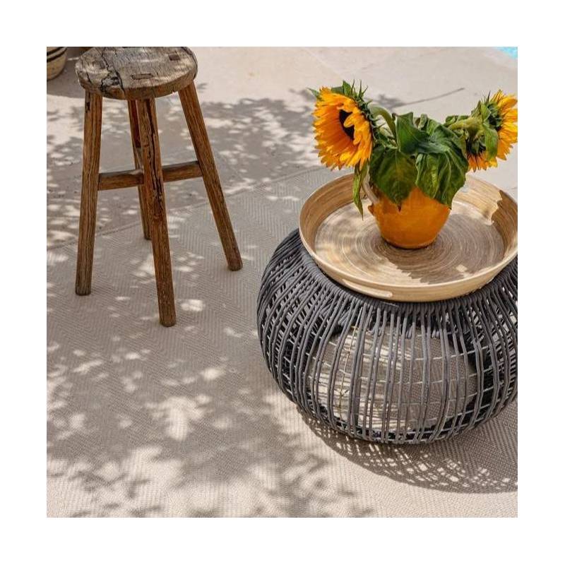Son tissage plat résistant supporte les UV, l’humidité et les passages fréquents, tout en offrant un toucher agréable et un entretien facile.