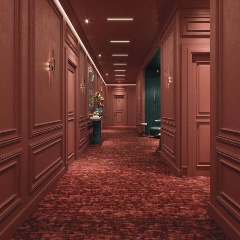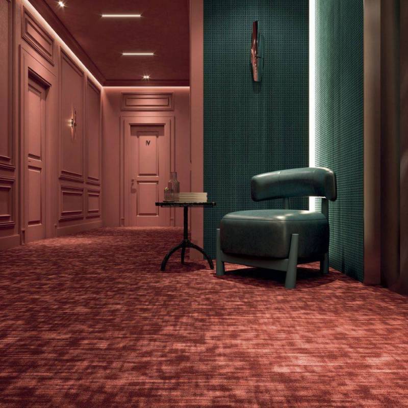 D’ailleurs, et ce n’est pas un hasard, le motif de cette moquette anti-bruit est conçu pour faciliter les raccords. Le design de la trame peut se raccorder dans le sens de la longueur comme de la largeur, ce qui est particulièrement appréciable pour les couloirs en T. Enfin, les sept couleurs disponibles ne cherchent pas spécialement à attirer l’attention, mais plutôt à s’harmoniser avec tact à l’ambiance existante.