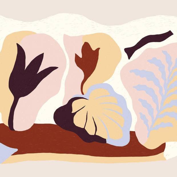 Composition créée à partir d’un ensemble d’archive des années 60, la fresque Monstera est une explosion de végétaux et de formes géométriques. Réalisée dans l’esprit des collages naïfs, cette fresque séduit par sa simplicité et son énergie joyeuse. Le coloriage presque enfantin de ses formes nous apporte cette spontanéité et légèreté dont on rêve. La beauté et l’harmonie de ses courbes bercent notre regard.