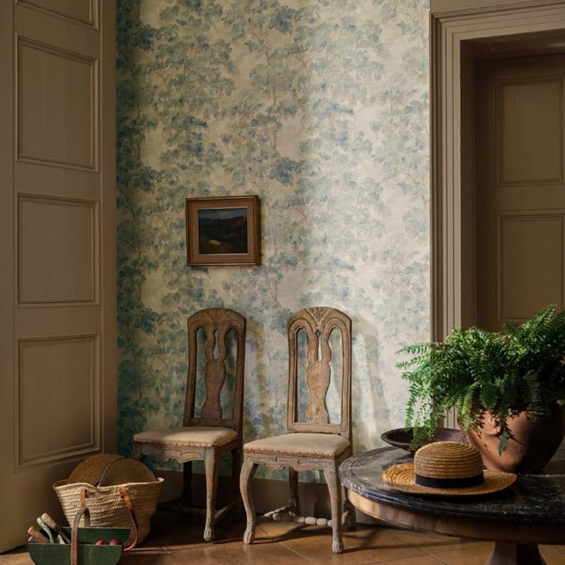 Évoquant la grande tradition décorative du XVIIIe siècle des scènes peintes à la main sur mesure, Arbour évoque une scène boisée idyllique à l'atmosphère paisible et romantique. L'œuvre d'art magnifiquement peinte gagne en profondeur et en texture grâce à un luxueux fond en sisal.
