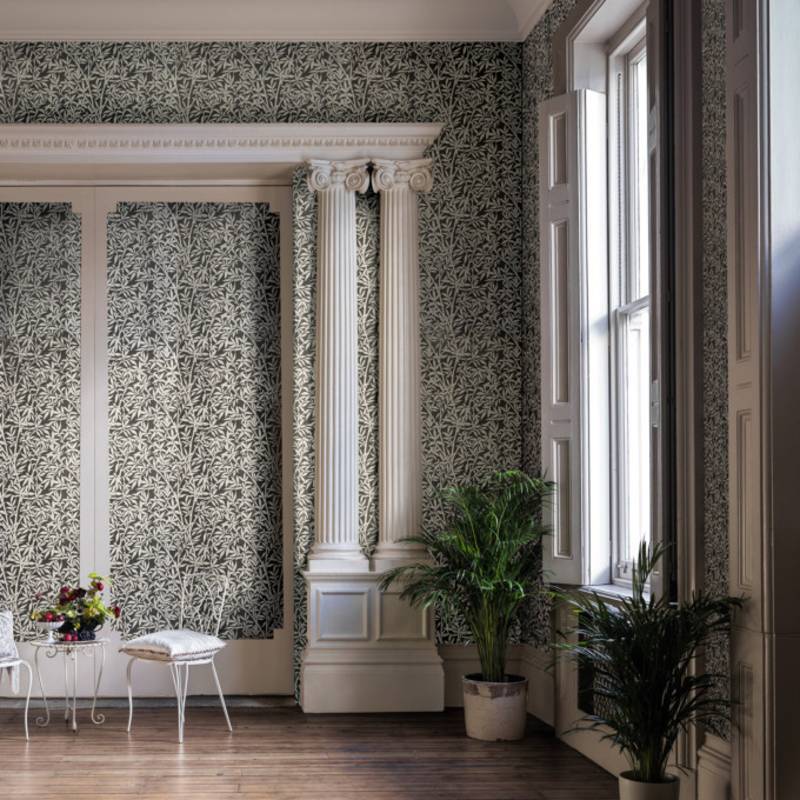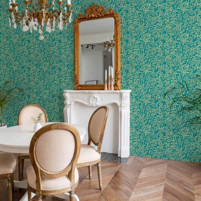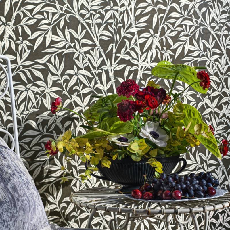 Né au début du XIXe siècle, le motif Bamboo Forest témoigne de l'engouement pour l'orientalisme à l'époque victorienne. Symbole de résilience et de prospérité, le bambou offrait une touche d'exotisme inattendue dans les intérieurs opulents souvent chargés de meubles massifs. Décliné en palettes monochromes de verts profonds et de rouge, de gris doux, du contraste saisissant de 'Snow on Soot', et des teintes contemporaines de jaune bouton d'or et bleuet, la dense forêt de Bamboo Forest étonne par sa modernité épurée.