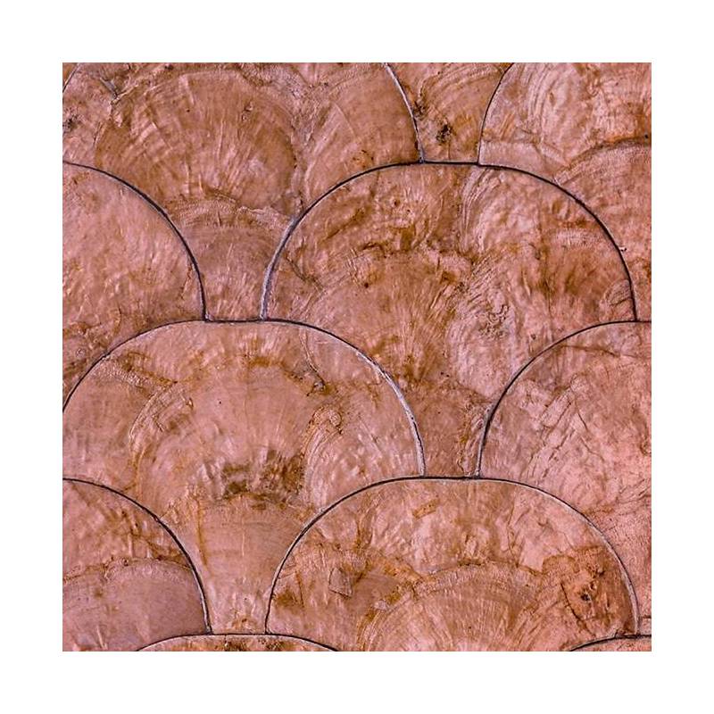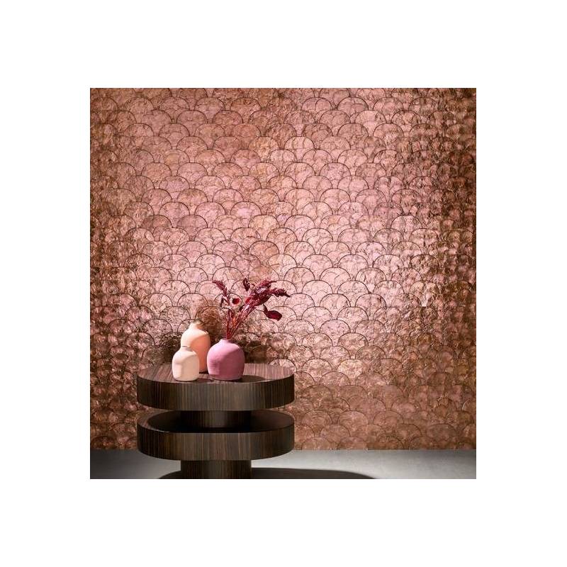 De véritables coquillages dans un motif géométrique où les nuances de couleur de la nacre varient en fonction de la lumière.