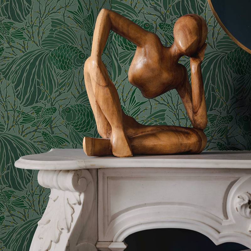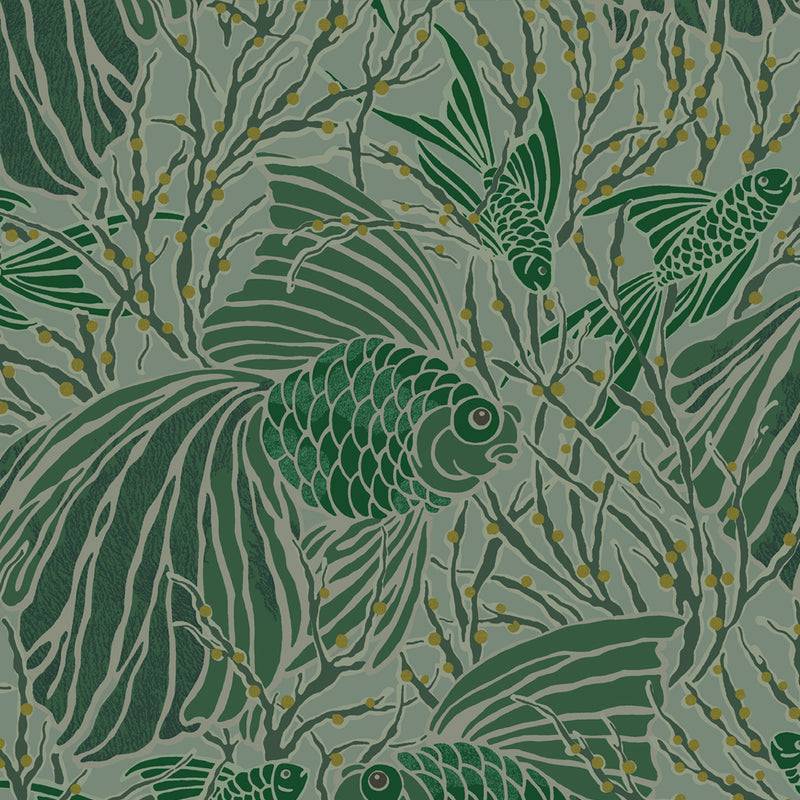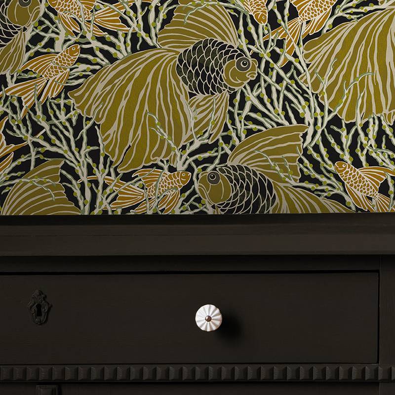 Créée en 1925 pour la Maison Isidore Leroy, Cyprins est une gouache en sept couleurs emblématique du style de E. A. Séguy. Dans ce décor onirique, poissons et algues se mêlent en lignes souples, évoquant la douceur et le calme d’un monde aquatique suspendu.