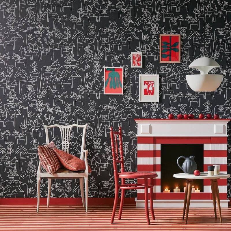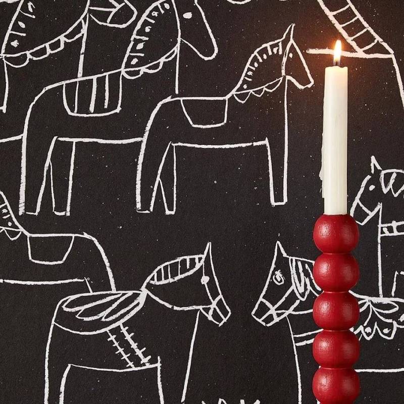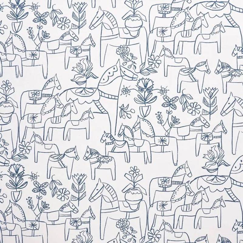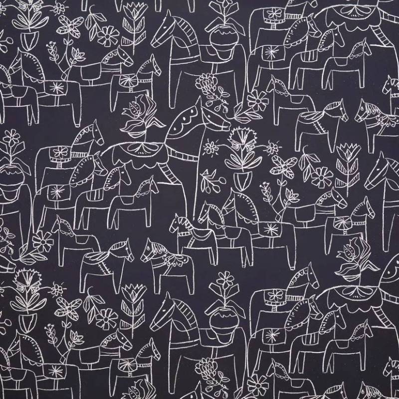 Comme dessinés à la craie, ces chevaux stylisés sont inspirés des figurines populaires en bois traditionnelles de la région de Dalécarlie, en Suède.