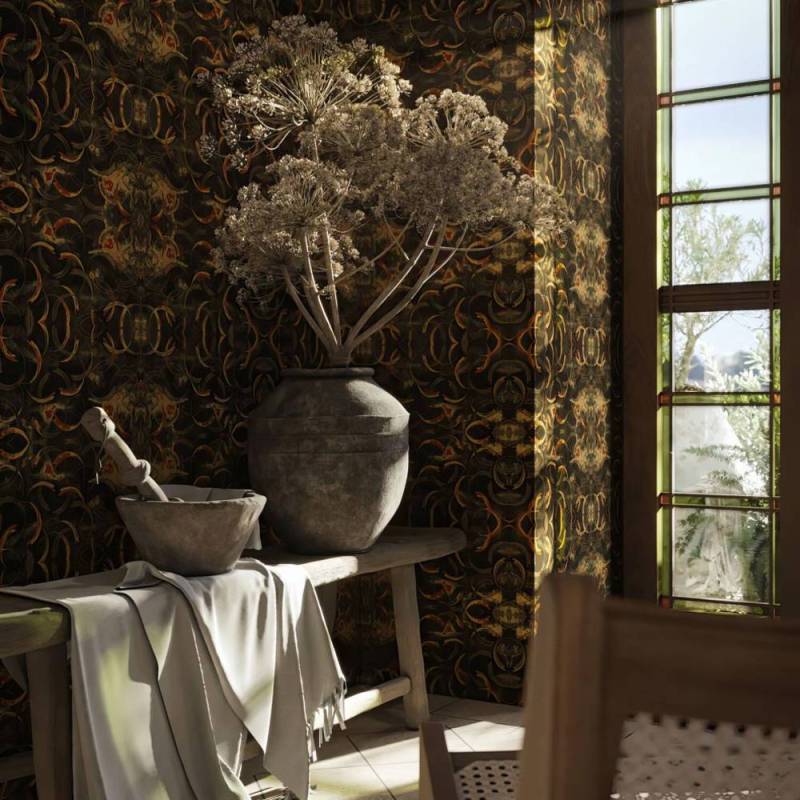 Avec ses lignes envoûtantes et ses entrelacements complexes, les papiers peints Damask N°1 magnifient des fragments de formes aux proportions harmonieuses et subtiles.