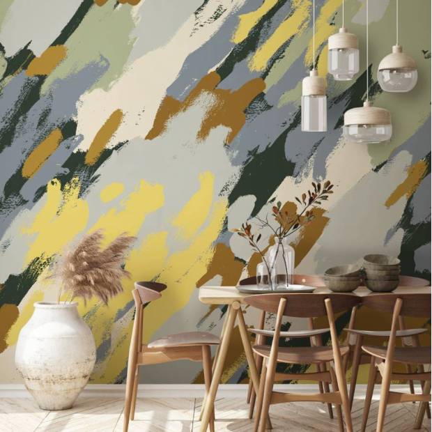 "Dendrophile II" trouve son inspiration dans les feuillages luxuriants des arbres et des forêts, qui sont mis en scène à travers une gamme harmonieuse de gris, de verts et d'ocres.