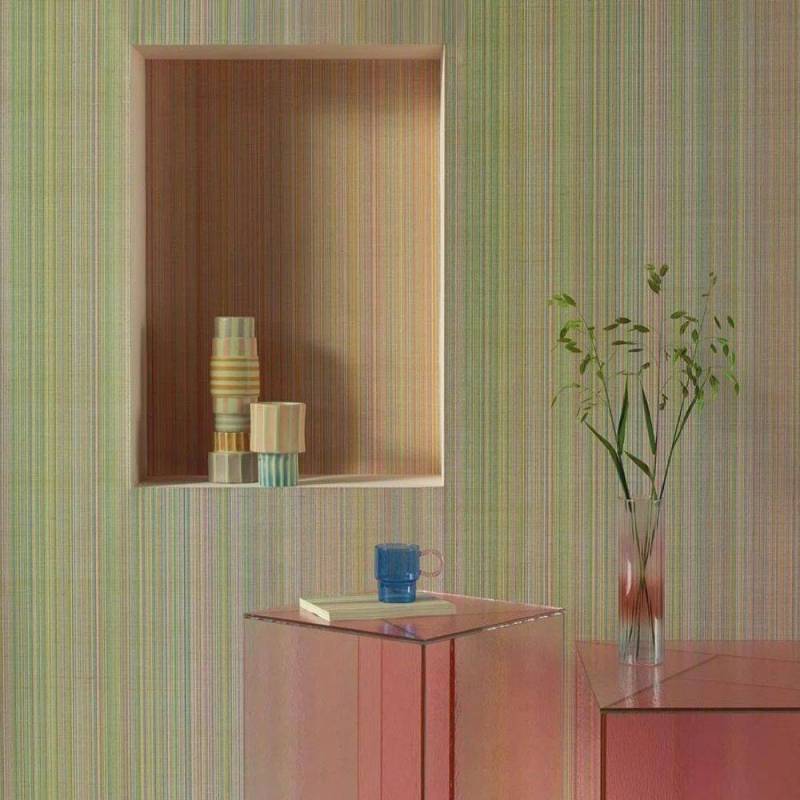 Jolie rayure milleraies très fine et multicolore avec des dominantes rappelant les couleurs d’un soir d’été, d’un lagon ou encore d’un jardin…DORDOGNE est imprimé sur un support en sisal.
