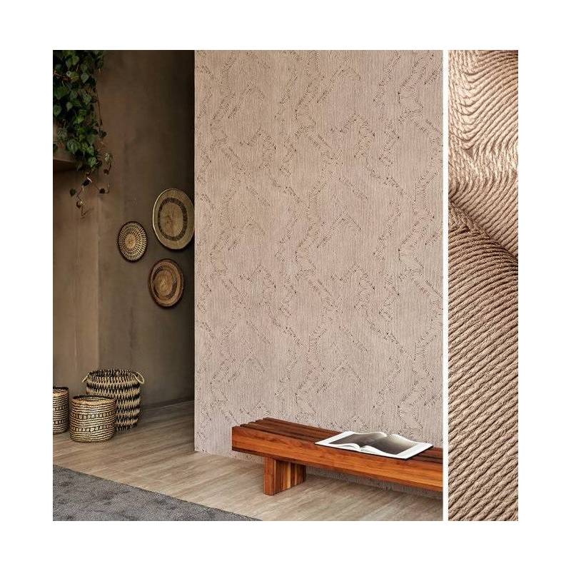 Le mariage de dessins floraux et de formes organiques est le fil conducteur de toute la collection Manila. Placée méticuleusement à la main dans les motifs, une corde de différents matériaux et épaisseurs vient créer un dessin minimaliste tout en relief. Sur le mur, ce travail artisanal de précision se traduit par un aspect hautement raffiné et sophistiqué. Manila surfe sur la tendance d’intérieur où cordes et cordons tissés sont intégrés dans diverses applications.