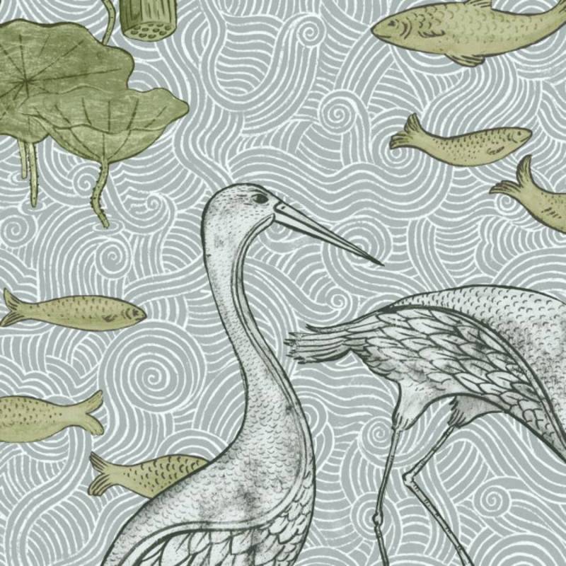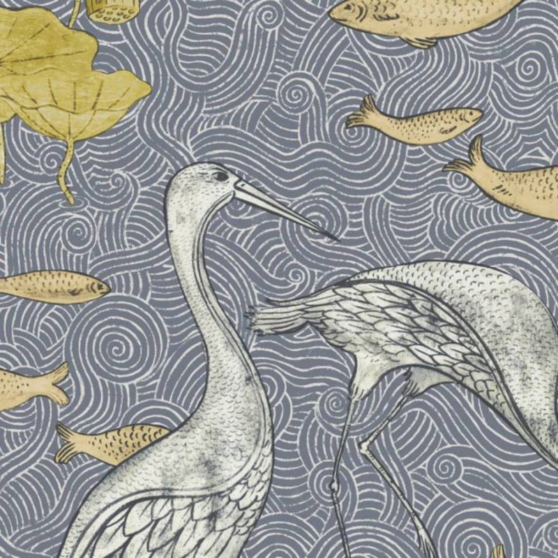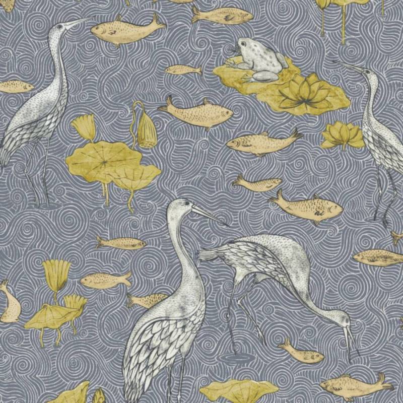 Enchanted River représente des hérons jaune pâle entourés de poissons, de grenouilles et de nénuphars orange et bronze dans une mare stylisée noire et jaune. Les reflets métalliques du papier peint lui apportent caractère et élégance, d'autant plus qu'ils sont associés à la couleur orange visuellement forte. Pour un intérieur unique. Enchanted River se décline en 5 coloris.