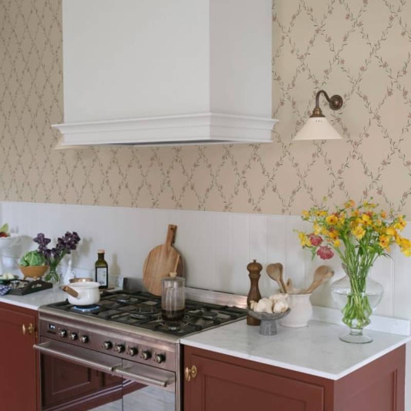 Notre bien-aimée Ewa habille vos murs de guirlandes de bleuets gracieusement peintes à la main. Le bleuet était l'une des fleurs coupées préférées à l'époque gustavienne. La palette de couleurs Dusty Pink se compose d'une base rose pâle et chaude et de guirlandes de fleurs dans des verts doux et des roses poussiéreux.