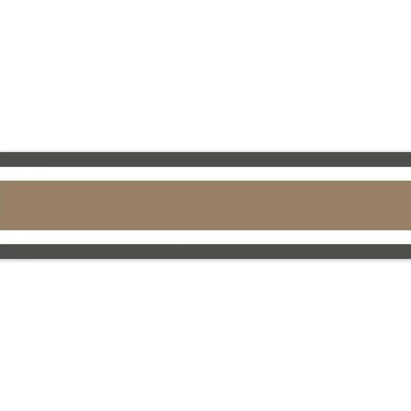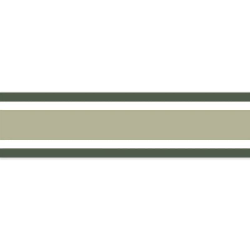 Méli/mélo de rayures Moins étroite que les galons la frise L Elégante additionne avec brio les rayures : 2 fines bandes entourent une plus large contrastante sur un fond blanc. Ce dessin toute en finesse sur 13 cm de haut autorise toutes les déclinaisons colorées.