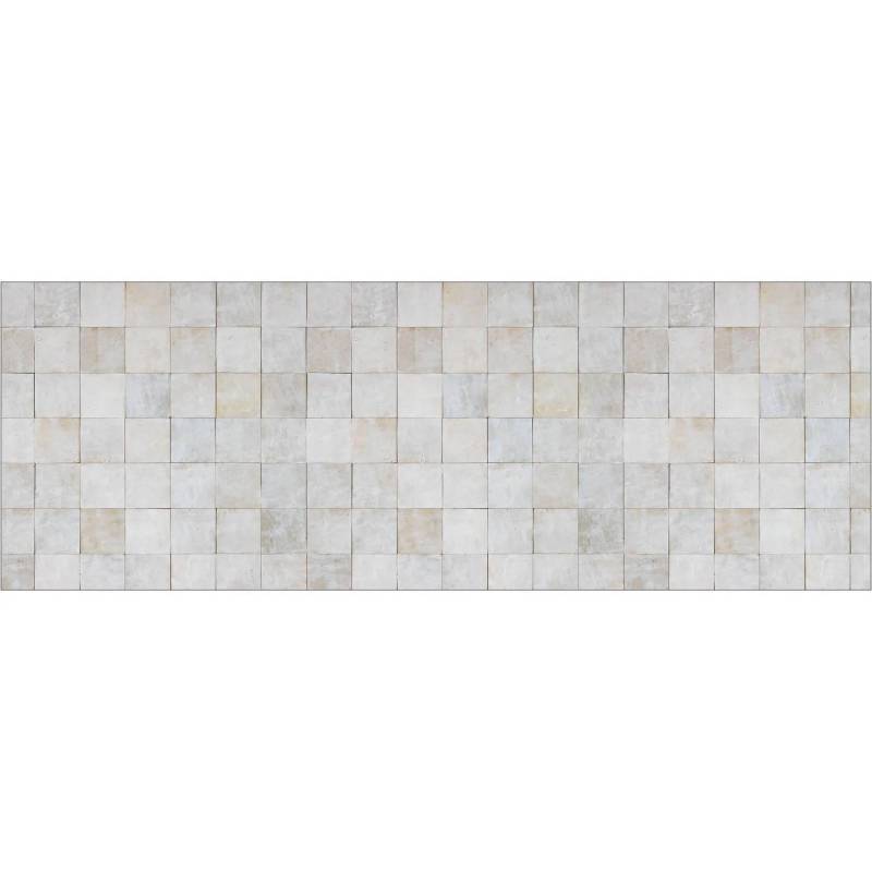 Trompe l’œil ! Proposé dans un format frise (53 cm de haut), ce papier peint reprend les codes du zellige, une mosaïque issue de l’artisanat traditionnel marocain.