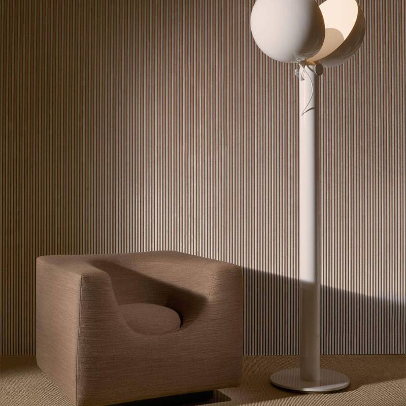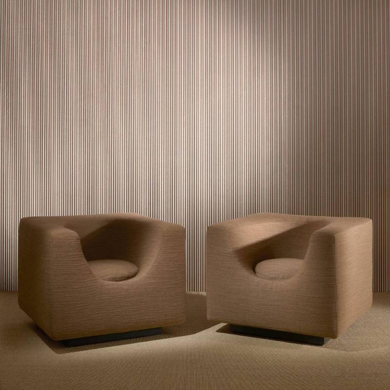 En français, le galon désigne un ruban ornemental utilisé traditionnellement pour souligner subtilement des textiles luxueux. Le revêtement mural qui porte ce nom puise ainsi son inspiration dans le garnissage des anciens canapés français, souvent décorés de fines rayures bicolores. Pour le sublimer, il est présenté ici dans un somptueux et lumineux jacquard de velours.