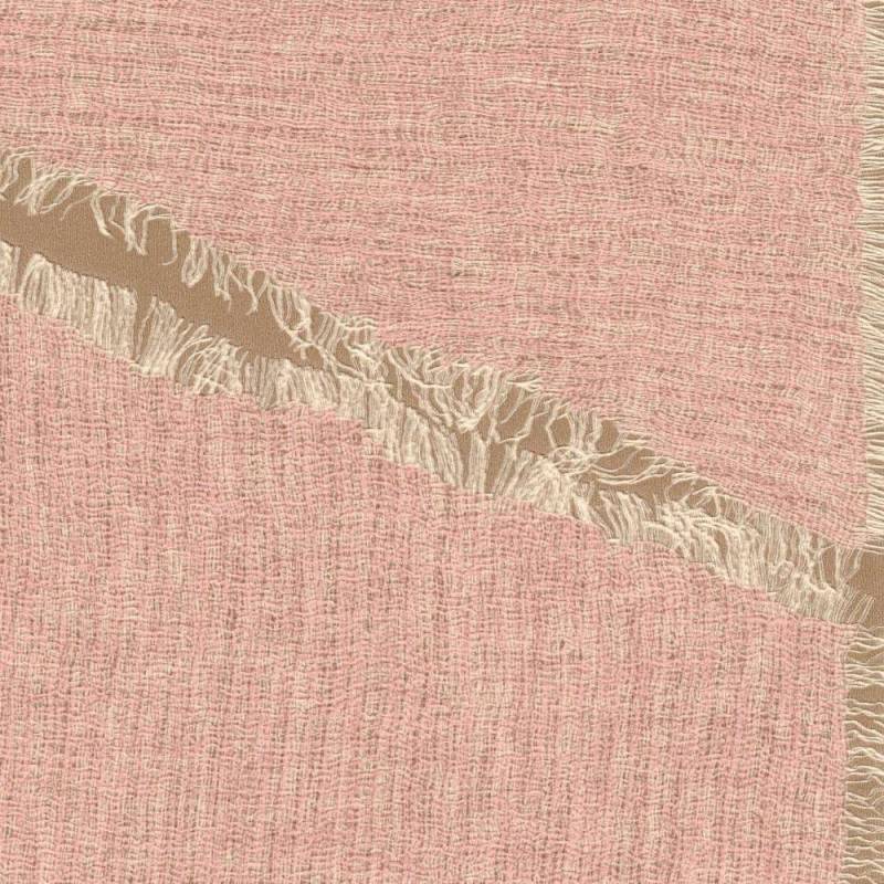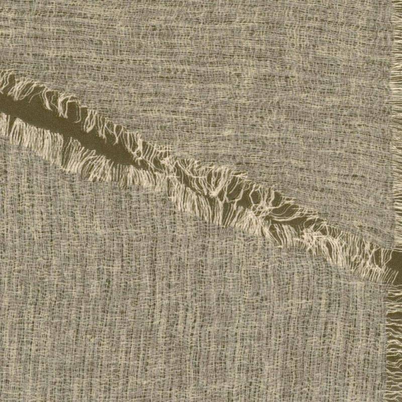 De larges demi-chevrons inclinés évoquent l'aspect brut des fils flottés façon tissage de lin.