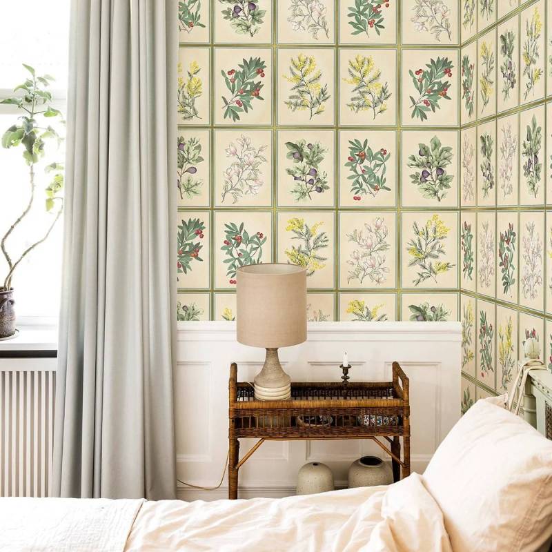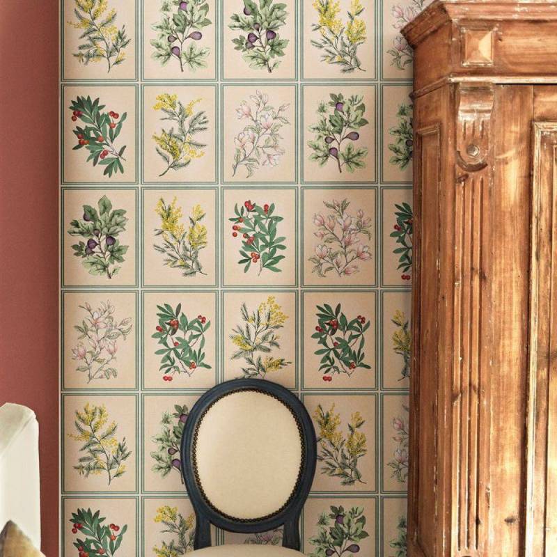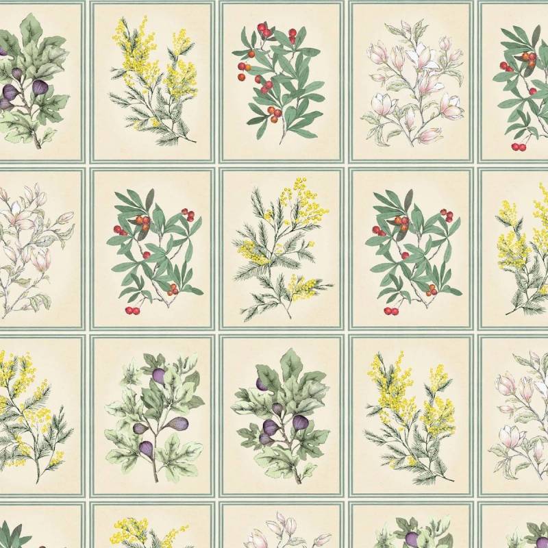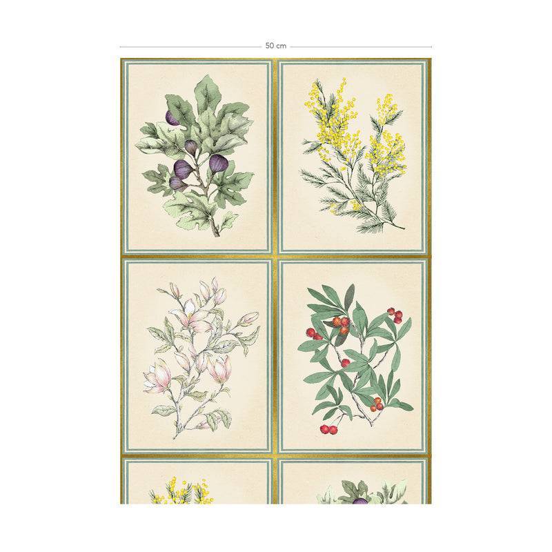 Herbier est une succession de motifs botaniques reprenant les arbustes dessinés par Francesco Battista dans notre décor personnalisable "Arbustes" : Mimosa, Arbousier, Figuier, Magnolia.