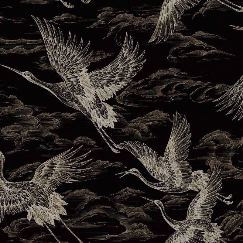 Le papier peint Imperial Ibis est un dessin monochrome réalisé à la main dans les ateliers de Coordonné. Il immortalise le spectacle rare des hérons cendrés en plein vol, déployant leurs ailes avec élégance, au milieu des nuages au charme onirique. Ces oiseaux de bon augure apportent la paix, et imprègnent en même temps les murs de leur grâce.