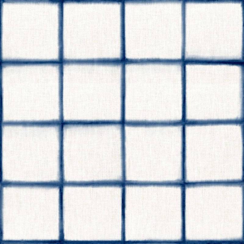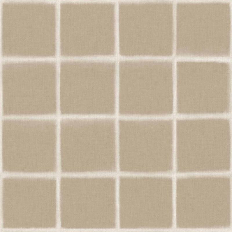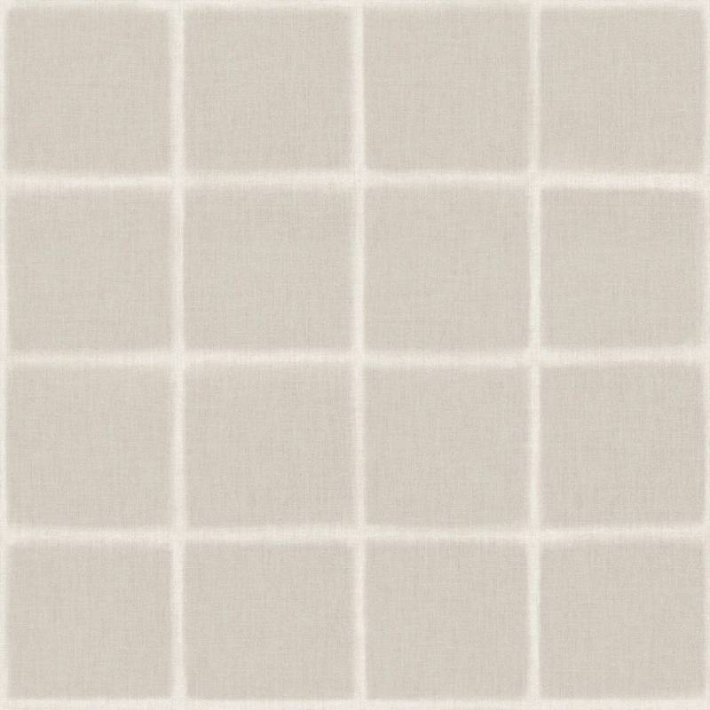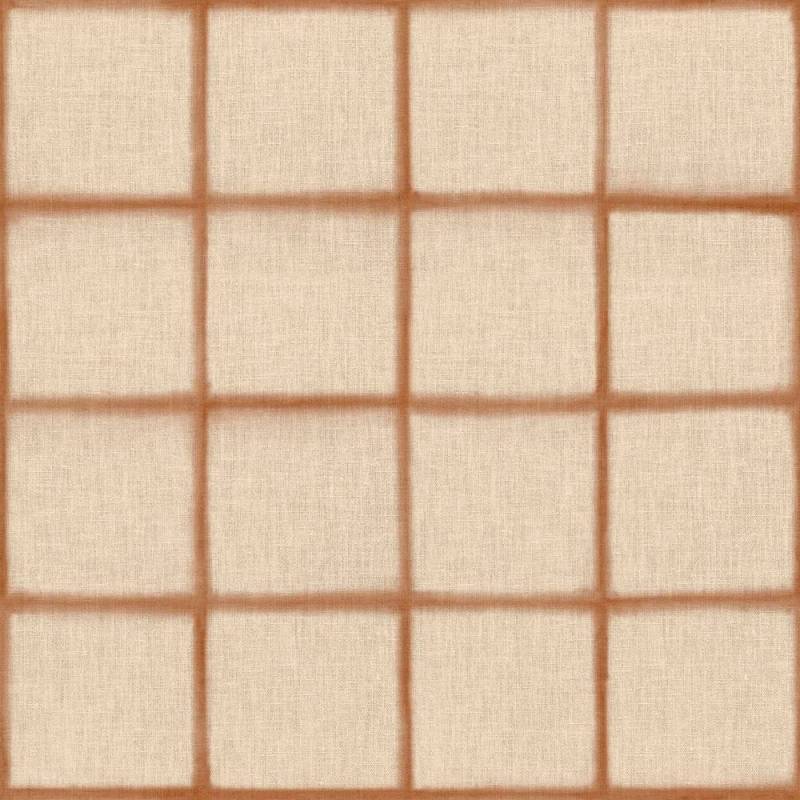 Le motif à carreaux se compose d’une grille délicate, dessinée par des lignes floues aux contours irréguliers. Cette irrégularité maîtrisée apporte une sensation plus organique au graphisme, comme une empreinte artisanale. Sur un fond à l’aspect textile, l’ensemble crée un effet légèrement patiné, subtil et lumineux.