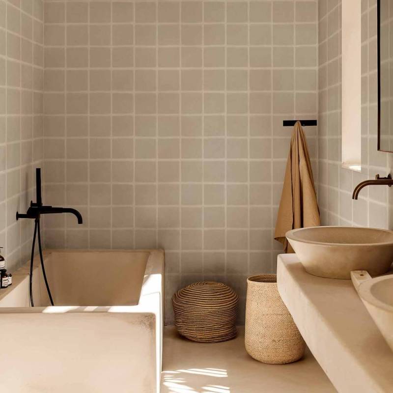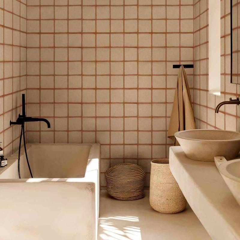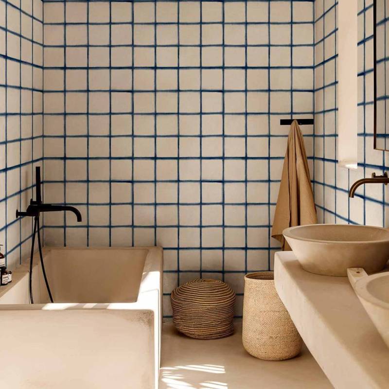 Itajime de Coordonné est un papier peint panoramique au motif géométrique, issu de la collection Shibori. Il célèbre la tranquillité d’une répétition géométrique, à travers un décor à la fois sobre, doux et parfaitement structuré.
