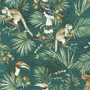 Un dessin botanique exubérant qui a l'air d'avoir été dessiné à la main, imprimé sur un fil-à-fil en toile de jute