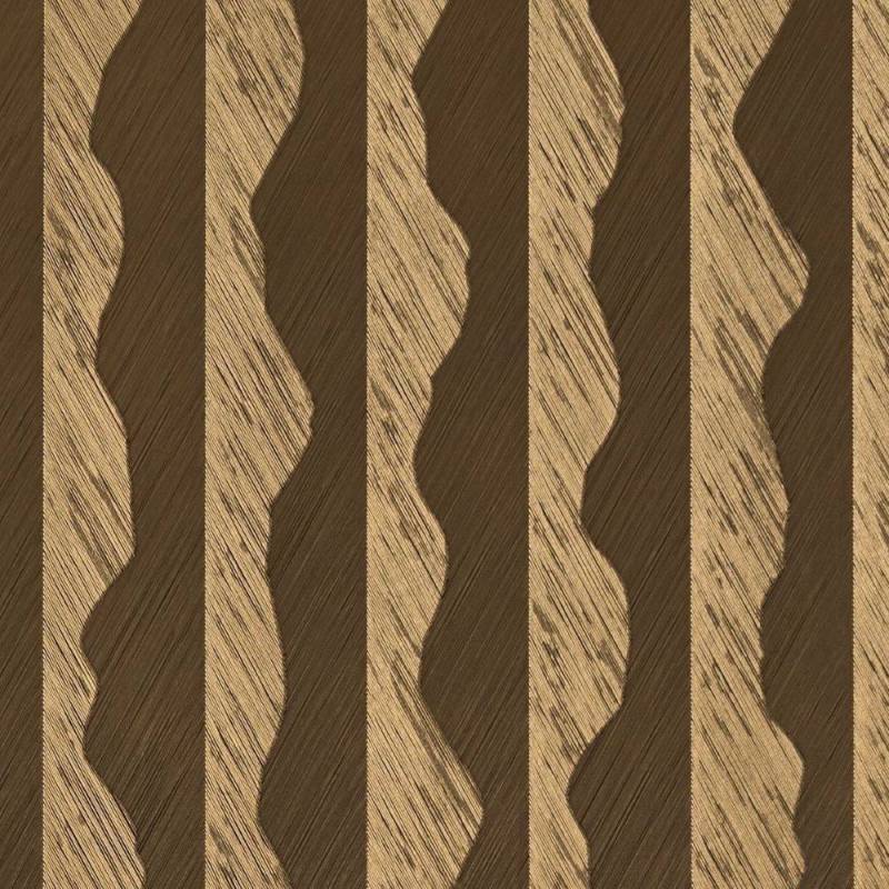 Sur une texture profonde et de grande largeur, une feuille de métal dorée est apposée et sculpte un motif de rayures délicatement striées. D’une brillance extrême, KOHINOR porte le nom d’un diamant de cent carats d’une grande pureté. Il se traduit par « Montagne de lumière » tant son éclat est intense.