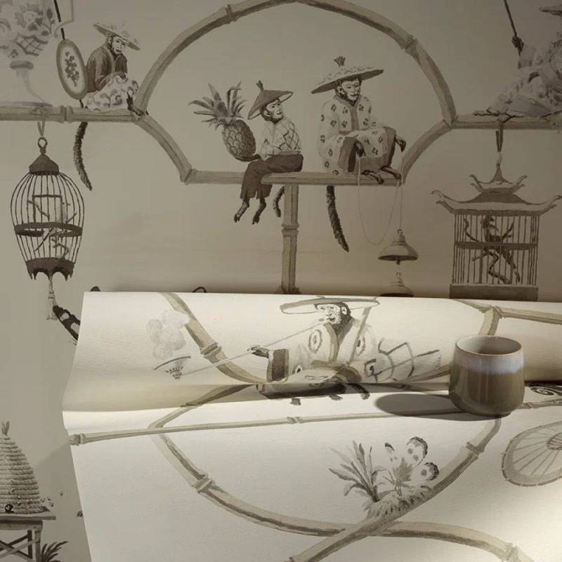 Papier peint Les Singes Savants de la collection Cappuccino de chez Pierre Frey.