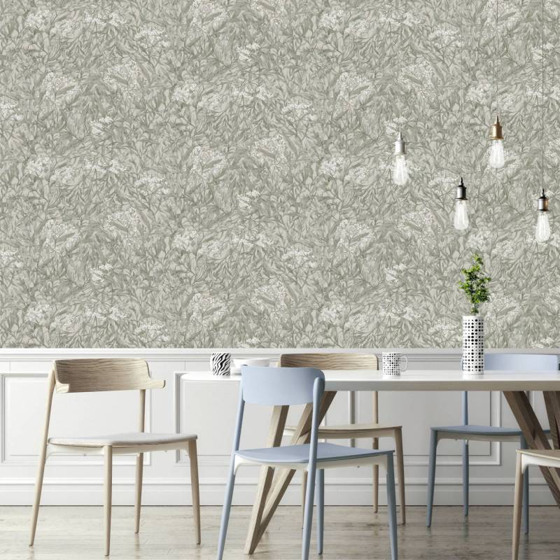 Malin est un papier peint fleuri reprenant les fleurs de sureau, ici en vert et rose pâle. Papier peint intissé qui se décline en 3 coloris.