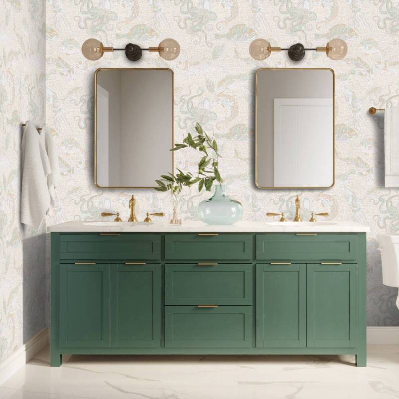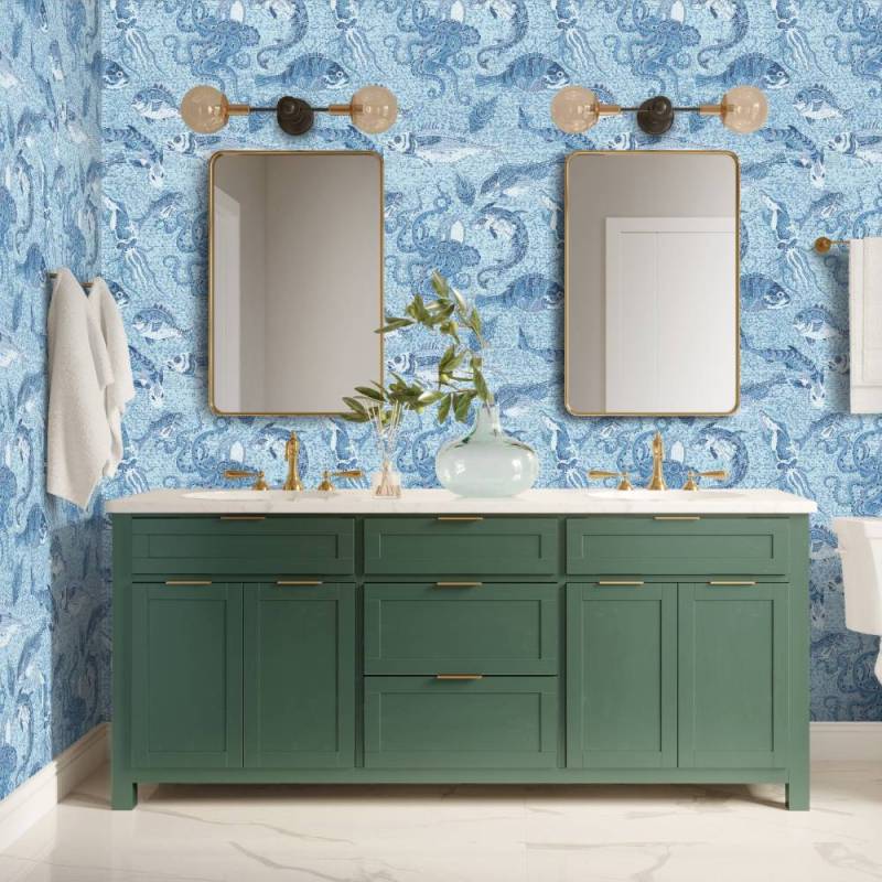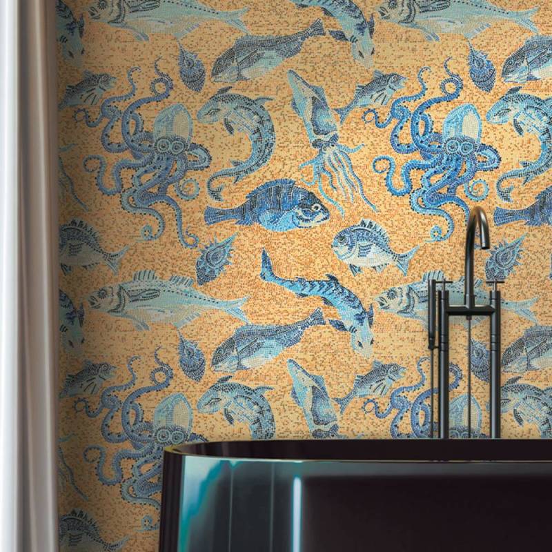 Scalamandré by Jannelli&Volpi: une collaboration inédite qui donne vie au récit d'un voyage à travers les 5 continents, marqué par un signe graphique issu du style classique du 19ème siècle. Cet élégant motif s'inspire de l'océan et présente une magnifique mosaïque qui incarne la fluidité et l'éclat de la vie marine. Les tons clairs et lumineux évoquent un sentiment de tranquillité et d'énergie, ce qui le rend parfait pour orner les murs d'une salle de bain élégante et pour renforcer l'atmosphère chaleureuse d'un foyer. Grâce à la peinture brillante utilisée pour sa création, Mikonos a un impact visuel brillant et un effet 3D.