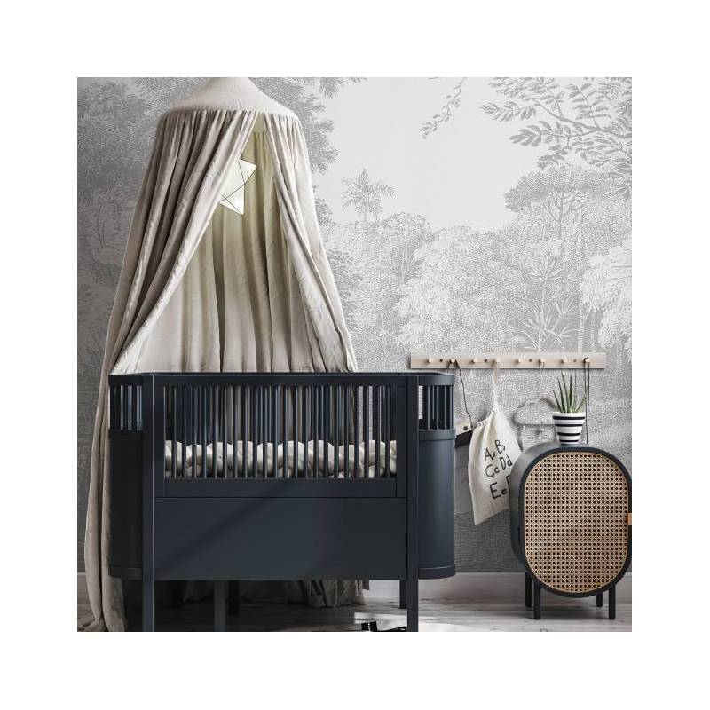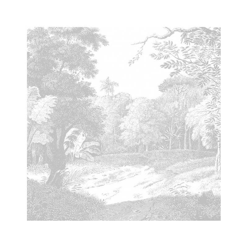Décor panoramique intissé sur mesure représentant une gravure gris clair d'une forêt. Nous vous conseillons d'ajouter 5 cm à votre hauteur et votre largeur.