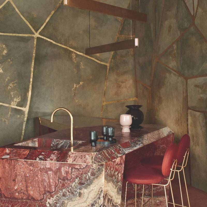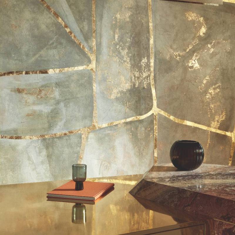 Papier Peint Panoramique Kintsugi éclat de la Collection Kintgsugi de chez Elitis. Standard en 6 m x 3,2 m disponible en 6 lés de 1 m ou Sur mesure