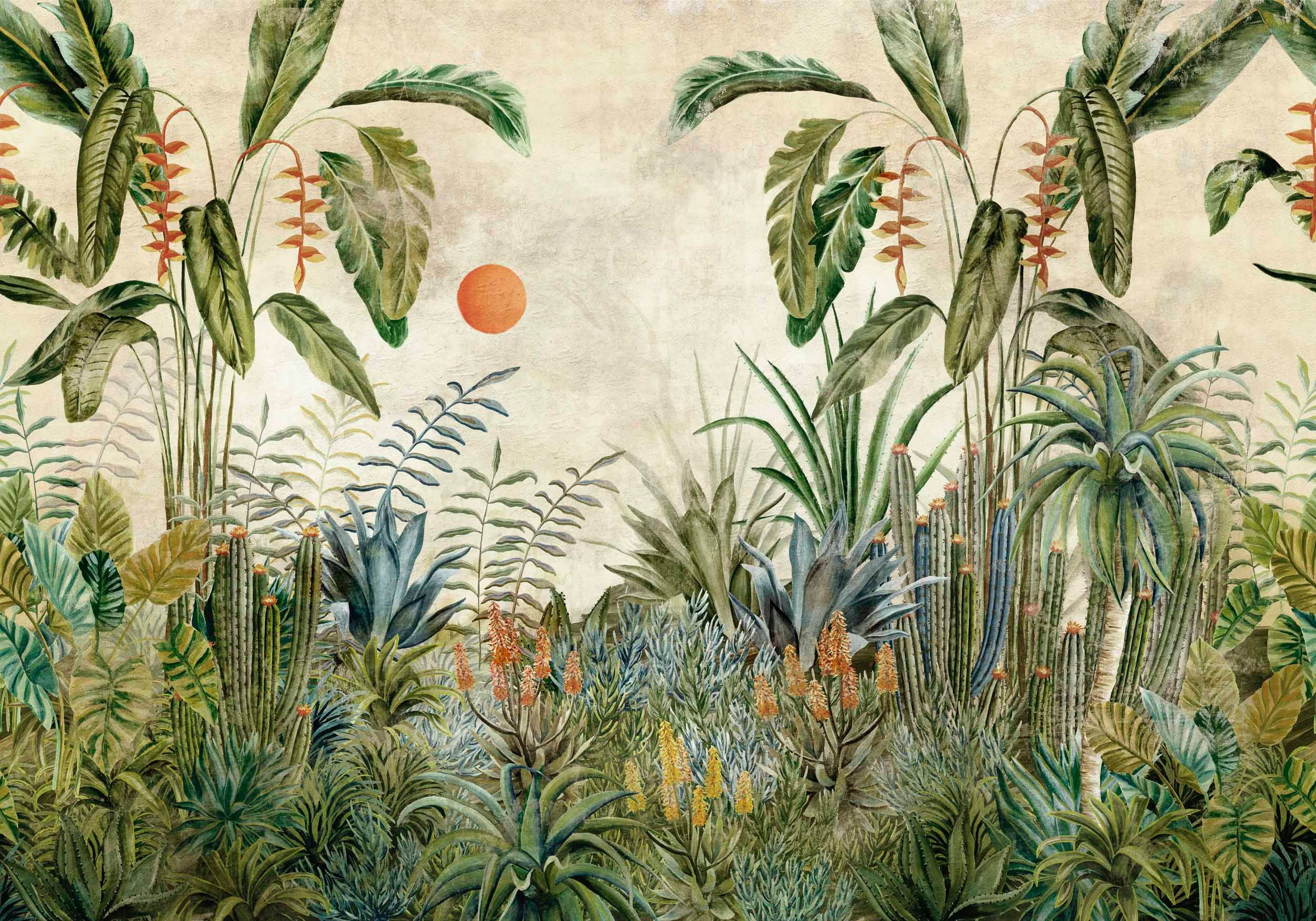 Aduanero de chez Coordonné est un motif végétal de la collection Sarape. Un paysage tropical et exotique dans le style de Rousseau, rayonnant d'un surréalisme magique d'une nature explosive.