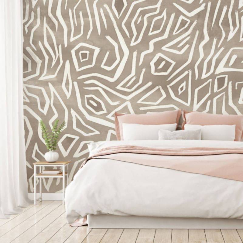 Pour ce papier peint qui rappelle l’atmosphère de la savane africaine, notre Studio de design a fabriqué ses pigments avec du thé. Ils ont ensuite été appliqués sur tout le papier, y compris les zones blanches, qui ont été en amont masquées. En résulte des petites irrégularités qui accentuent le caractère naturel et artisanal de ce papier peint sur mesure.