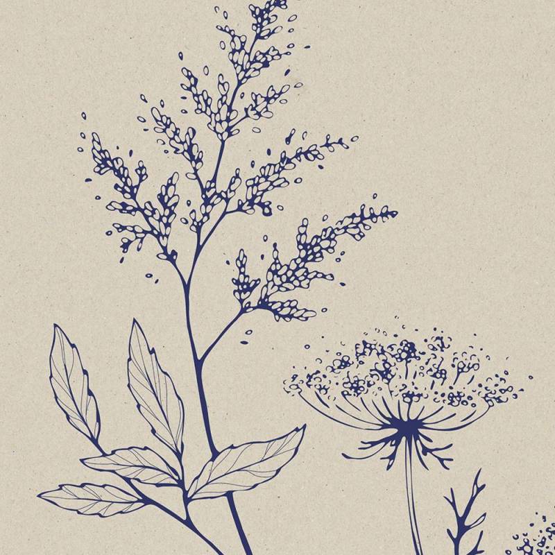 Sur un fond de toile immaculé, tel un parchemin ancestral, s'épanouit un jardin secret. Des lignes fines et élégantes, d'un bleu profond, dessinent une multitude de fleurs, chacune unique et précieuse. Les pétales, délicatement esquissés, semblent capturer la lumière d'un matin de printemps. Les tiges, fines et graciles, s'élèvent vers le ciel, portant avec elles la promesse d'un renouveau. Ce tableau végétal est une invitation à la rêverie, une ode à la beauté simple et fragile de la nature.