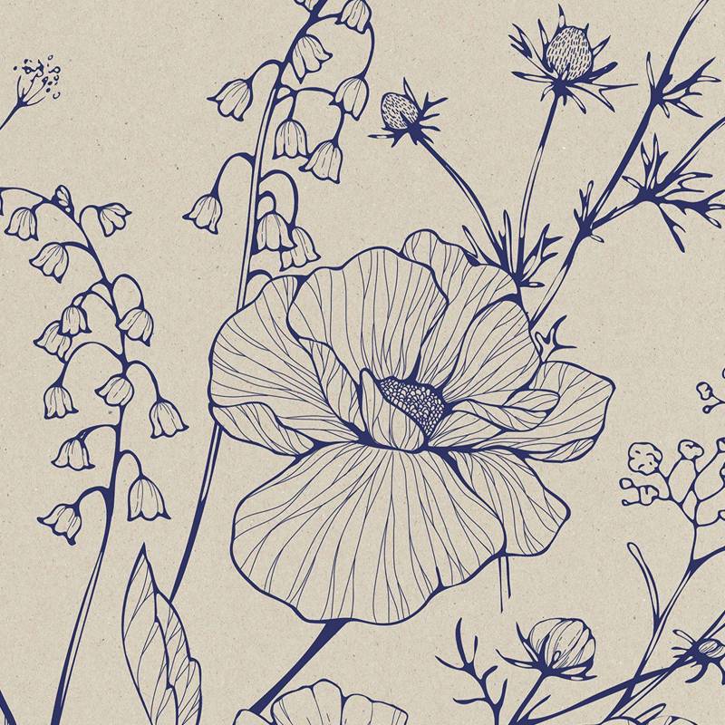 Papier peint Panoramique sur mesure Blue Linear Flowers en intissé de chez Walldreamer.