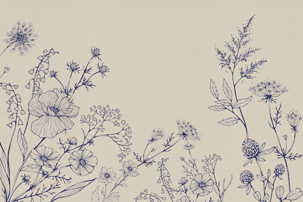 Papier peint Panoramique sur mesure Blue Linear Flowers en intissé