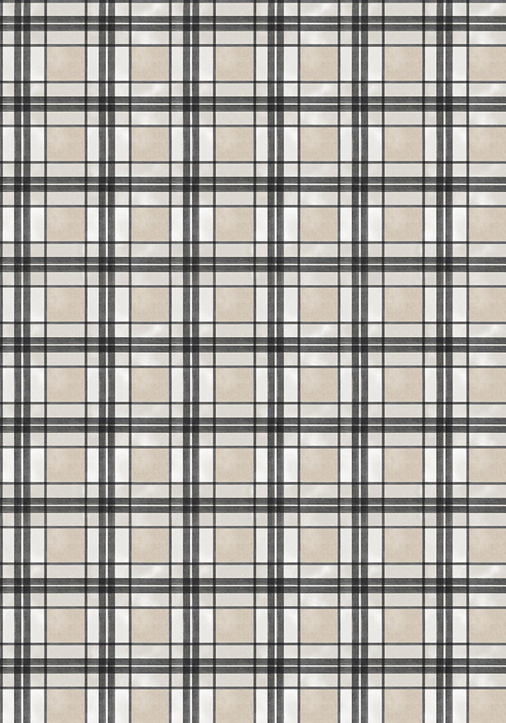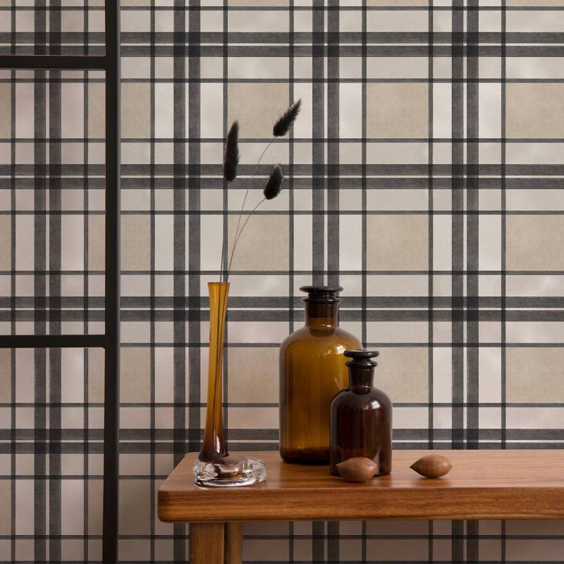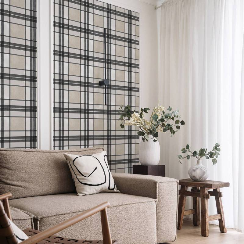 Ce motif tartan crée un rythme visuel envoûtant avec un quadrillage délicat qui habille le mur. Chaque carré est un espace à part entière, invitant à la contemplation.