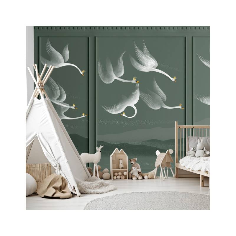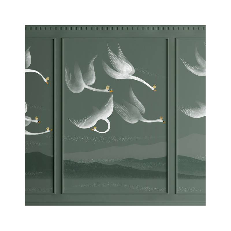 Papier peint Panoramique sur mesure Edmond swan de la collection Wall Panelling de chez Les Dominotiers.