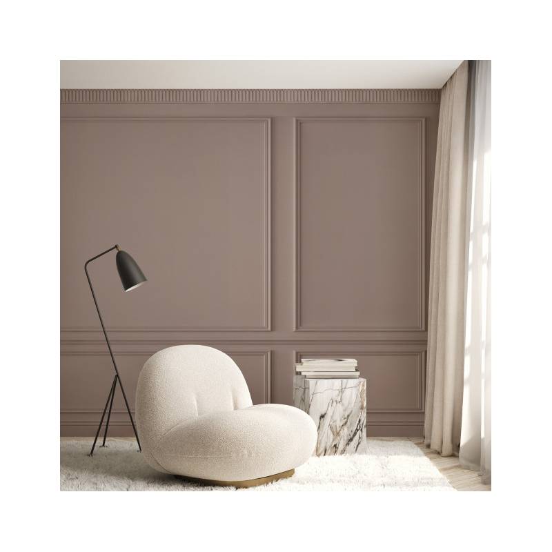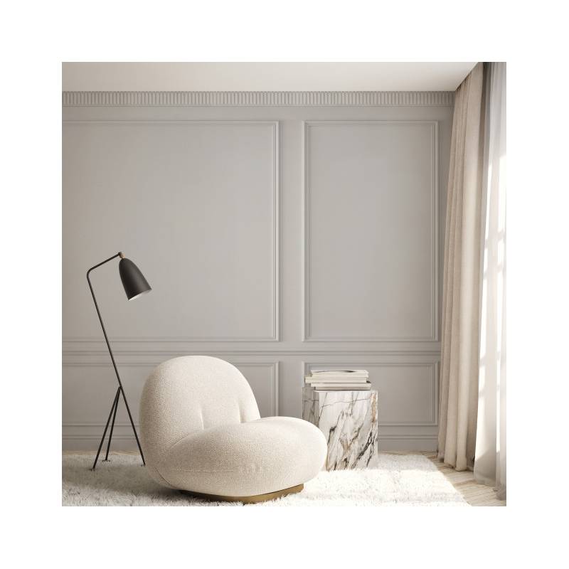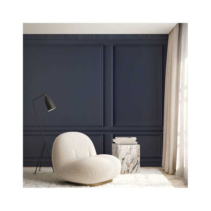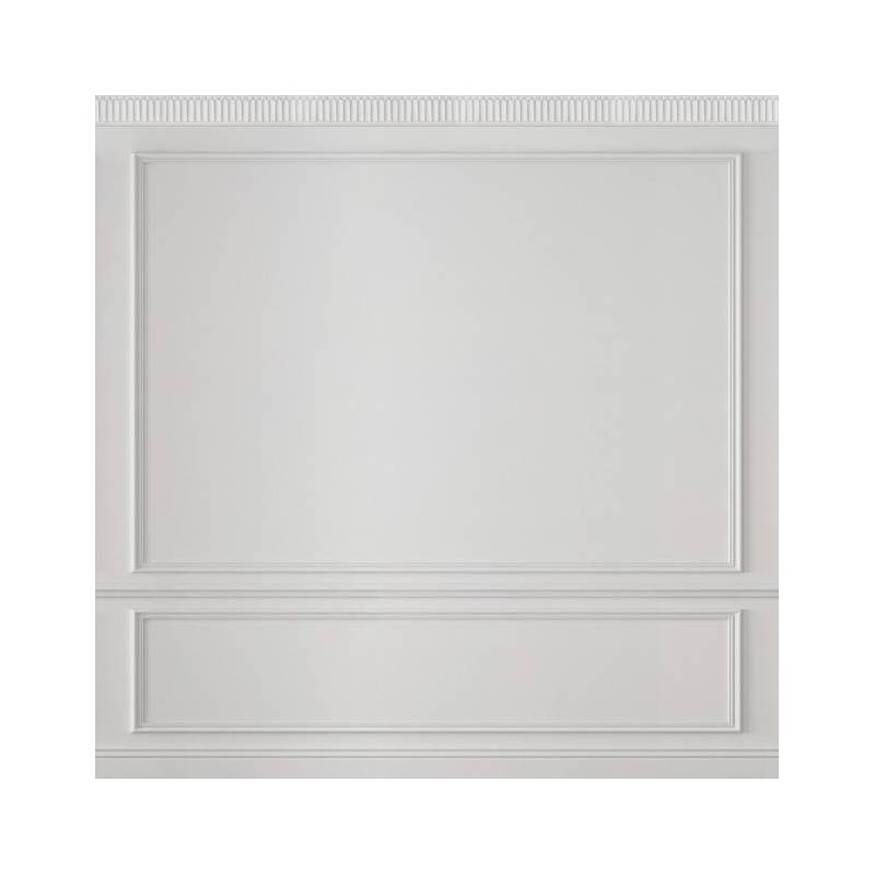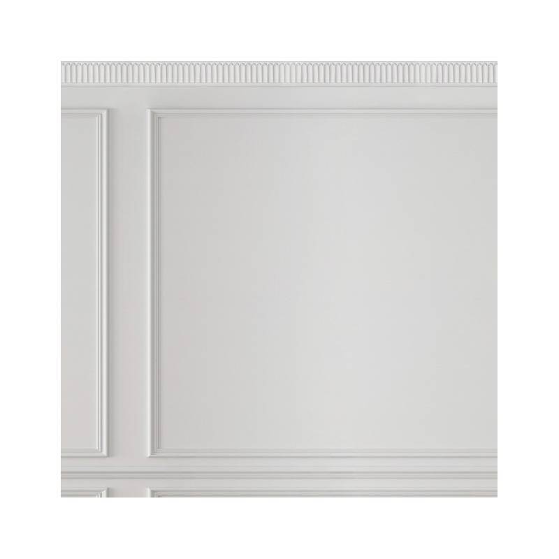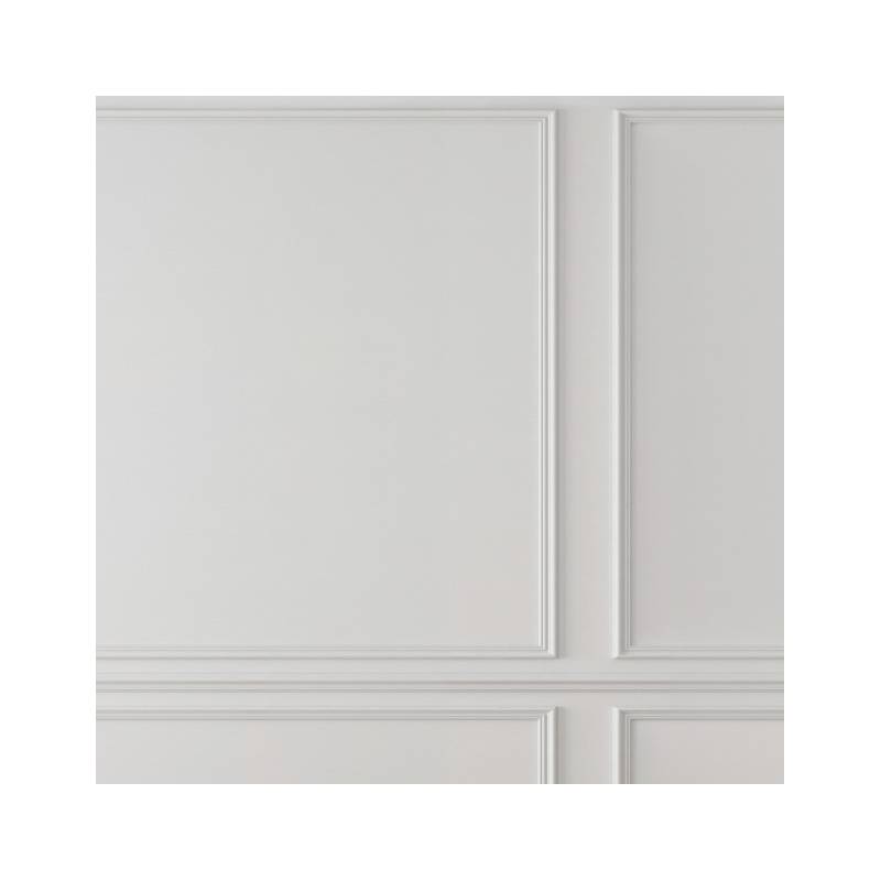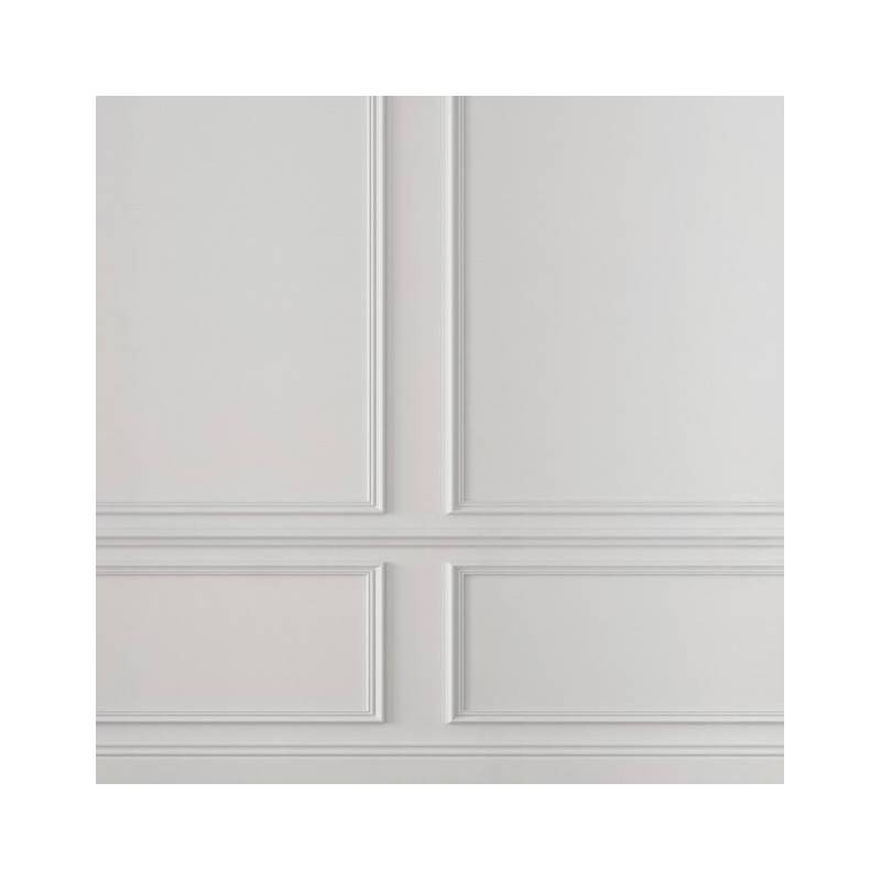 Le papier peint panoramique sur mesure en trompe-l’œil Eugène Pearl est tout simplement magistral. Ce décor panoramique Blanc crème représente la tradition architecturale haussmannienne dans toute sa splendeur. Eugène se compose de 3 grands panneaux moulurés divisés par une baguette horizontale. Les moulures sont espacées, laissant apparaître le mur, ce qui ajoute une profondeur supplémentaire au papier peint. En hauteur, une frise géométrique Art Déco joue sur les contrastes d’ombre et de lumière et achève de transformer le panneau mural en trompe-l’œil Eugène en une illusion parfaite. Il transformera ainsi un mur simple en un mur au charme et au cachet indéniable.