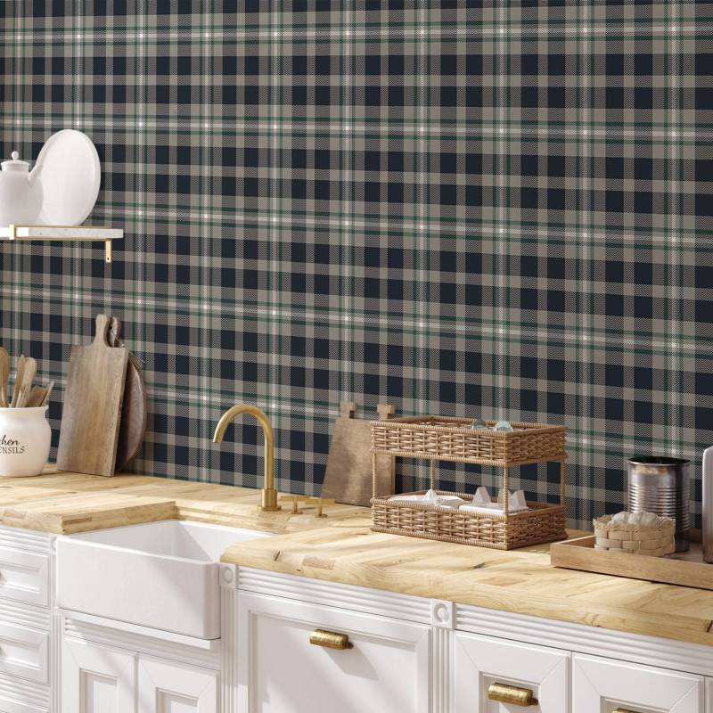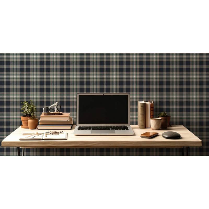 Ce motif tartan crée un rythme visuel envoûtant avec un quadrillage délicat qui habille le mur. Chaque carré est un espace à part entière, invitant à la contemplation.