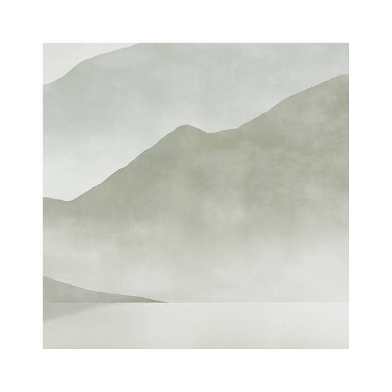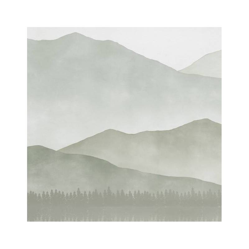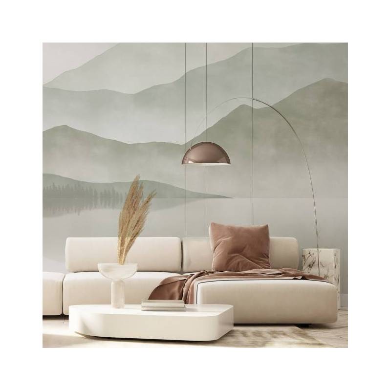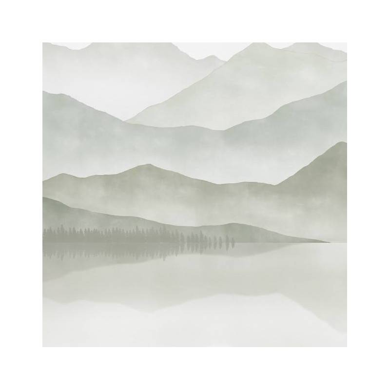 Tout en nuance de vert, le décor panoramique sur mesure Green Lake nous plonge dans un paysage abstrait calme qui rappelle la Scandinavie. Les montagnes, ou les glaciers, se dessinent grâce au jeu de lignes et de couleurs. Au premier plan, on imagine un lac dans lequel se reflètent les sapins présents sur la berge. L’utilisation de l’aquarelle confère une sensation de brume légère et de légèreté à ce paysage qu’on imagine peint à l’aube, avant le lever du soleil.