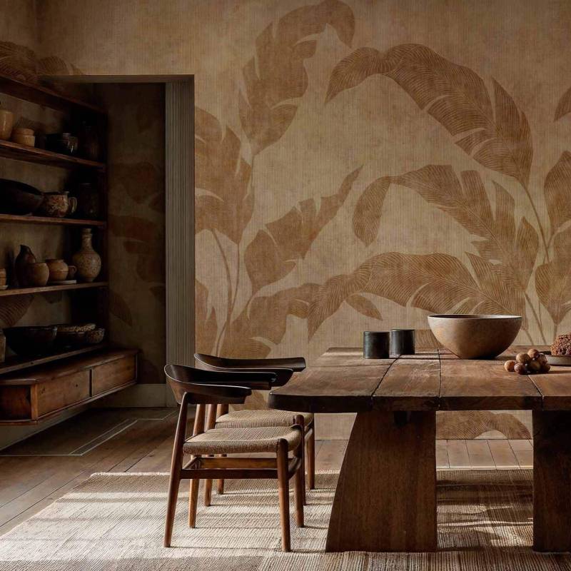 Papier peint Panoramique sur mesure Leaves Shadow en Intissé de la collection Berber de chez Coordonné.