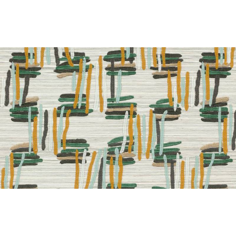 Une broderie en relief scintillante sur un fond semblable à une natte de tatami.